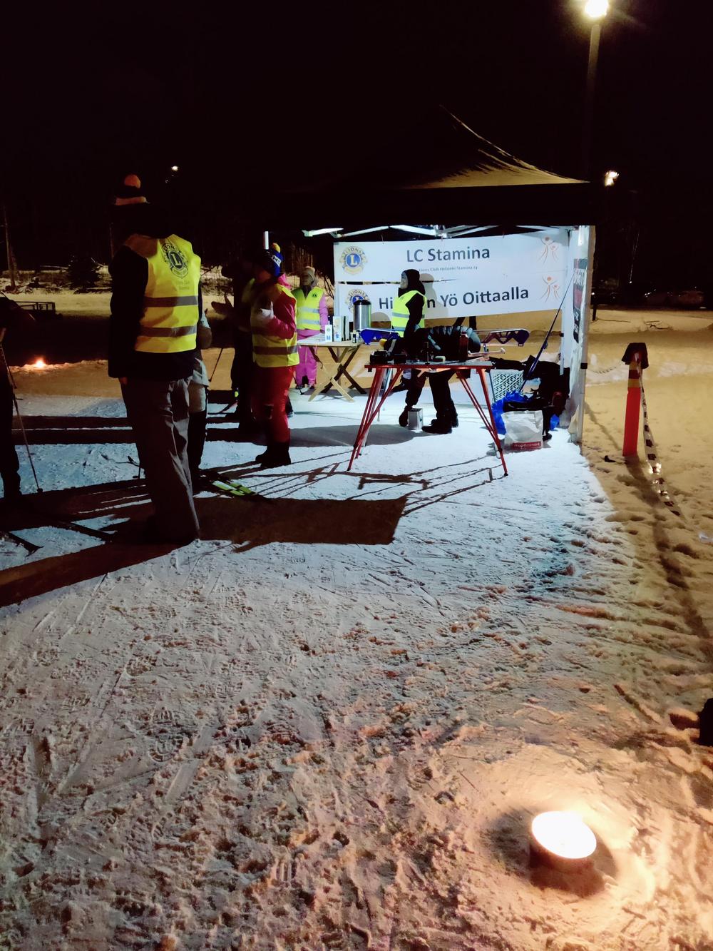 Kuumaa mehua ja pikavoitelupalvelua tarjolla kaikille hiihtäjille kello 20:00 asti.