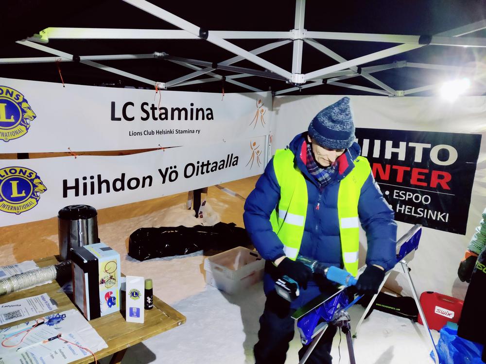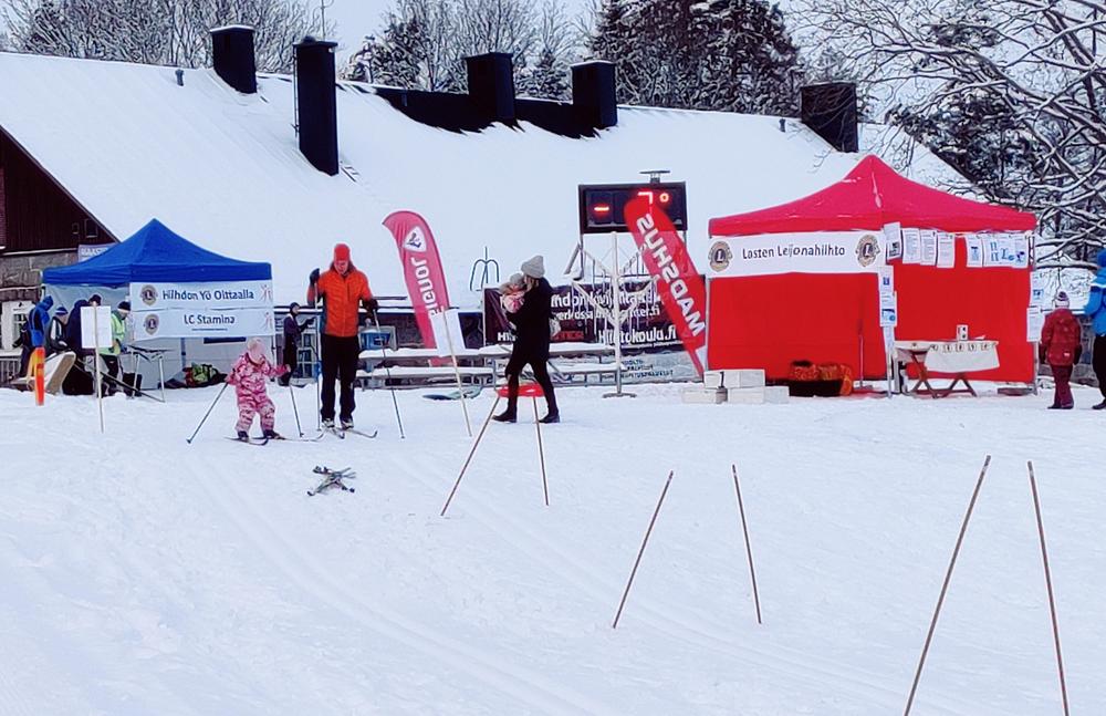 Lasten Leijonahiihdon aikaan pystytämme mehu- ja suksihuoltopisteen kahvilan lähistölle.