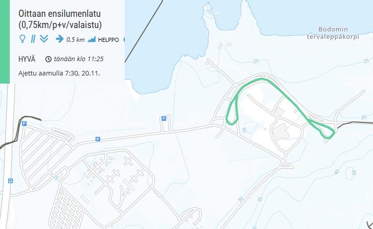 Viereisessä kuvassa on tilanne 20.11.2025, kun säilölumesta tehty ensilenkki on jo valmiina.